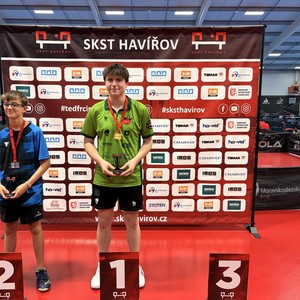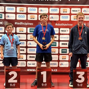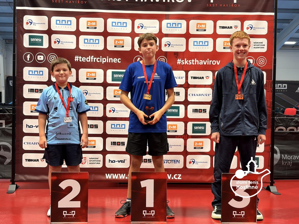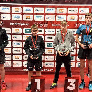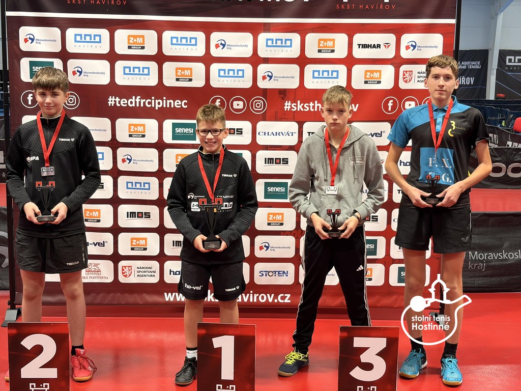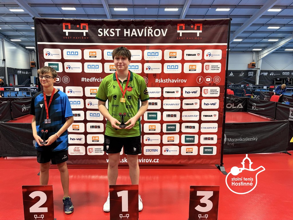 Na druhých celorepublikových bodovacích turnajích mládeže jsme se na severní Moravě opět zaskvěli. Výsledky jsme navázali na veleúspěšné představení v Praze. Naše děti zahrály na výbornou a my jsme si domů opět odvezli skvělá umístění. V Havířově se v sobotu 11. října představili kadeti. Klub reprezentovala pětice hráčů. Tomáš Matuška, Radim Gazárek, Hugo Šmika, Dominik Bartoš a Vojtěch Kosina. Prvně jmenovaný se na turnaji pomalu rozjížděl. V základní skupině sice nezaváhal, zvítězil ve všech třech zápasech, ale jeho výkony nebyly optimální. V pavouku se jeho hra postupně zlepšovala. Mezi nejlepšími 16 hráči turnaje nejprve vyřadil Filipa Bednáře (DDM Kotlářka Praha), ve čtvrtfinále si poradil s nebezpečným Tobiášem Fabiánem (TTC Frýdek-Místek). V semifinále se postavil čtvrtému hráči turnaje Filipu Hejkalovi (HB Ostrov). Tomáš odehrál kvalitní zápas, zvládnul všechny důležité okamžiky a po zásluze se probojoval do finále. V něm stanul domácímu Richardu Feberovi. Talentovaný hráč na nás vlétnul, hrál opravdu ve velké hráčské pohodě. Tomáš se snažil ze všech sil, soupeři vzdoroval, ale tentokráte tahal za kratší konec. Stříbrná medaile je dalším skvělým výsledkem našeho hráče na startu nové sezóny. Radim Gazárek se představil ve skvělé formě. V základní skupině poráží postupně Tomáše Frice (STC Slaný), Jana Machovce (HB Ostrov) a nakonec prvního hráče skupiny Tomáše Vokřínka (MS Brno). Radim postoupil z prvního místa do pavouka. V prvním kole poráží Petra Postolku, ve druhém Vojtěch Sýkoru a ve čtvrtfinále si to rozdal s favorizovaným Hejkalem (HB Ostrov). Radim začal skvěle, škoda promarněné koncovky prvního setu. Druhý a třetí set jasně ovládl. I ve čtvrtém byl po dlouhý čas lepším hráčem. Držel si vedení až do 7-4. Soupeř se však nevzdal, bojoval o každý míč a náskok v koncovce stáhnul. Za stavu 8-8 Radim začal hrát více na jistotu, což se mu vymstilo. Koncovku nezvládl a v pátém setu již nepředváděl tak dominantní výkon. Po bitvě podlehl 2-3. Velká škoda, medaili si hostinnský hráč doopravdy zasloužil, odehrál skvělý turnaj. Hugo Šmika měl jednu z nejtěžších skupin na turnaji. První zápas ještě zvládnul, druhý proti Špinarovi mu vůbec nevyšel a ve třetím proti Flajšarovi bojoval. V pětisetovém dramatu však padl a ze skupiny bohužel nepostoupil. Vše si vynahradil v útěše, kde po výborných výkonech nenašel přemožitele a po zásluze ji celou ovládl. Ve starších žácích se představili i naši mladí hráči. Dominik Bartoš a Vojtěch Kosina. Oba hráli turnaj B a oba skvěle. Domča vypadl v osmifinále turnaje, Vojtík stanul ve finále. Neskutečné výkony věkem nejmladšího žáka. V něm již v pozdních hodinách na soupeře nestačil. Všichni hráči odehráli výborný turnaj a já jim za předvedené výkony děkuji!!! V neděli se v Ostravě představili mladší žáci. Měli jsme zastoupení v pětici mladých šikulů. Vojtěch Kosina, Dominik Bartoš, Julie Dostálová, Matylda Šmiková a Karolína Nosková. V A turnaji nastoupili první tři jmenovaní. V chlapcích se oběma podařilo ze čtyřčlenných základních skupin postoupit do hlavní soutěže. V pavouku se představil nejprve Dominik. Jeho soupeřem byl nebezpečný levoruký hráč Ranecký (HB Ostrov). Domča odehrál jeden z nejlepších zápasů letošní sezóny, bohužel podlehl po dramatickém průběhu 11-13 v pátém setu. Vojta měl první kolo volné, ve druhém doslova smetl Kubeše. Ve čtvrtfinále nastoupil proti favoritu turnaje a pozdějšímu vítězi Feberovi (SKST Havířov). Vojta statečně vzdoroval, nedal svoji kůži lacino. Čtvrtfinále je dalším výborným výsledkem našeho šikuly. Julča Dostálová v základní skupině předvedla řadu dobrých okamžiků, do kýženého vítězného konce v celém zápase to však nestačilo. Ze skupiny nepostoupila a v útěše vypadla v prvním svém zápase. V B turnaji Matylda Šmiková a Karolína Nosková ze svých skupin postoupily. Máťa skupinu vyhrála, Kája byla druhá. V prvním kole pavouka se oběma dařilo, ve druhém byla již úspěšná pouze Máťa. Ve čtvrtfinále podlehla nejtěsnějším rozdílem 9-11 v páté sadě Peterové z MH ST Ostrava. V juniorech kategorie U17 se nejvíce dařilo Ondřeji Kosinovi, který obsadil velmi hezké 9. místo. Ondra odehrál skvělý turnaj, porážku v pětisetové bitvě zaznamenal až ve svém posledním zápase v osmifinále. Tomáš Matuška dokázal zcela ovládnout B turnaj a probojoval se tak na další turnaj mezi nejlepší. Poděkování za vzornou reprezenatci klubu patří všem našim dětem!!! Po právu na ně můžeme být pyšní.