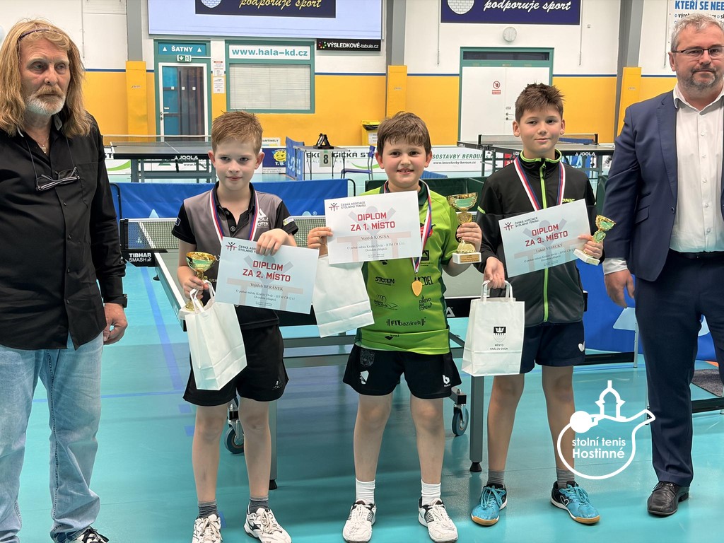 V Králově Dvoře se odehrál letošní druhý republikový bodovací turnaj mládeže kategorie U11. My jsme na turnaj odcestovali přímo z evropského turnaje CZECHIA OPEN hraném v Plzni, kde Vojta startoval v dresu ČR v kategoriích U13 a U15. Samotný turnaj začal již tradičně základními skupinami. V konkurenci 43 hráčů byl Vojta nasazený jako čtvrtý hráč. Ve čtyřčlenné skupině nezaváhal a skupinu vyhrál. Postoupil tedy do hlavní soutěže, v níž měl díky nasazení první kolo volné. Ve druhém kole změřil síly s Johnem z Mikulovic. Vojta zvítězil 3-0 a postoupil do čtvrtfinále. V něm doslova smetl mladičkého Lukáše Slabého z SKST Chodov. V semifinále stanul proti prvnímu nasazenému Lukáši Veseckému (STC Slaný). První dva sety se nám nedařilo najít na soupeře recept, až od třetího setu jsme se pomalu zvedali, bojovali o každý míč, což se stalo zásadním faktorem k obratu. Vojta nepodcenil žádnou výměnu, šel si za výhrou. Vývoj zápasu zcela otočil na svou stranu a po výhře 3-2 jsme byli ve finále. Vyvrcholení turnaje a souboj s talentovaným Vojtou Beránkem z HB Ostrov. Finále mělo všechny aspekty dvou nejlepších hráčů. První set byl lepší Beránek, ve druhém jsme kartu otočili a skóre srovnali. Třetí set byl vyrovnaný, šťastnější v něm byl v koncovce Beránek. Prohráváme 1-2. Začátek čtvrtého setu jsme nezachytili a prohrávali již 2-5. Soupeř náskok neustále navyšoval až do vytvoření šesti mečbolů. Hrozivý stav 4-10 a jediný míček od porážky. Vojta na sobě nedal znát stav beznaděje, bojoval i nadále. Věřil sám v sebe i v těch nejtěžších chvílích. Tak bojují šampioni. Dokázal téměř nemožné, uhrál 8 bodů v řadě, neskutečné. Skóre jsme srovnali na 2-2. Začátek pátého setu byl opět nakloněn na stranu Beránka, který si vypracoval v půli setu vedení. Od té chvíle byl na stole již jen jeden král a to byl náš hráč. Vojta odehrál neskutečně další koncovku setu. Nesmírně šťastný a zároveň značně unavený Vojtík dokázal, že má v sobě vícero druhu talentu a že má potenciál stát se nejlepším hráčem ČR. To se zároveň naplnilo, po vydání nového žebříčku ČR se probojoval na 1. místo kategorie U11!!! Velká gratulace!!!
